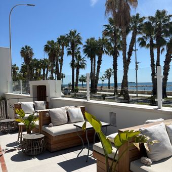This elevated establishment features an open-air terrace with panoramic views over Málaga's historic city center, offering comfortable seating arrangements designed to maximize the visual experience of the surrounding urban landscape.