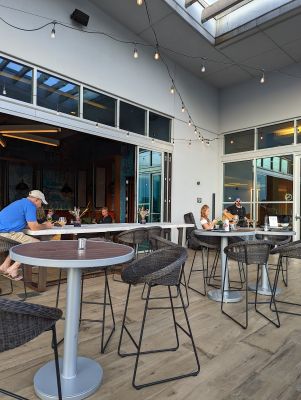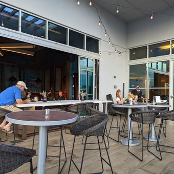 This elevated establishment features both indoor and outdoor spaces with panoramic views of Nashville's skyline, offering handcrafted cocktails, local beers, wines, and American-inspired sharing plates in a modern setting.