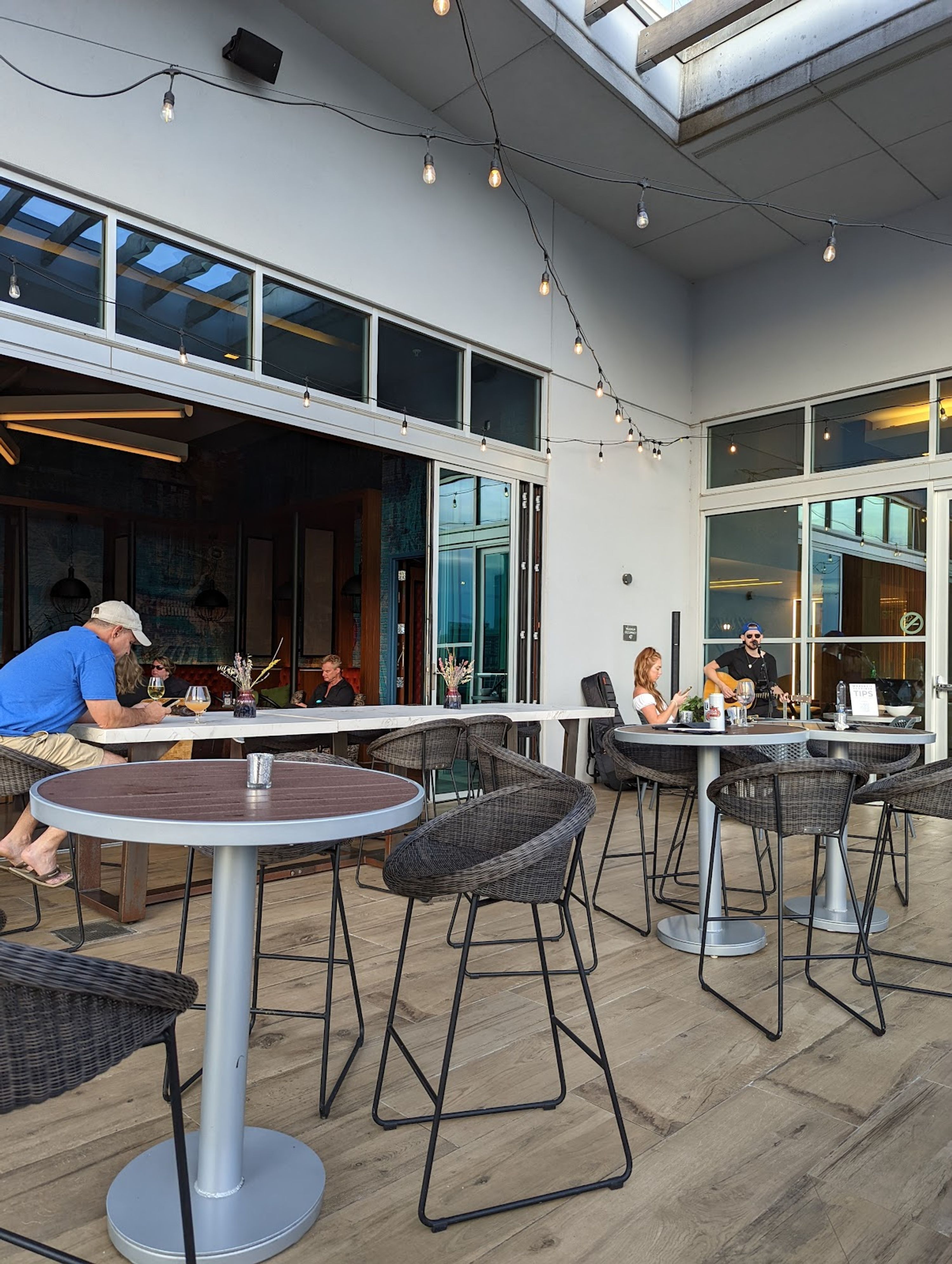 The establishment combines rooftop dining with access to a hotel pool during daylight hours, creating a rare dual experience where guests can swim and dine at the same elevated location.