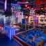 This venue features over twenty large-scale interactive games on its rooftop terrace, including physical challenges like trampoline-based Bullseye and collaborative activities requiring teamwork and coordination skills.