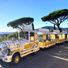 Le Petit Train Pignes operates as a trackless sightseeing train that takes passengers on guided tours through the streets and coastal areas of Sainte-Maxime, offering panoramic views of the Mediterranean coastline and local landmarks during its 45-minute journey.