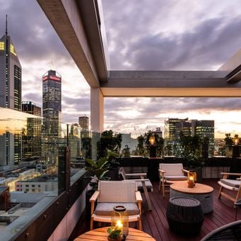 Rooftop at QT, Rooftop terrace restaurant and bar in central Perth, Australia.