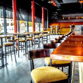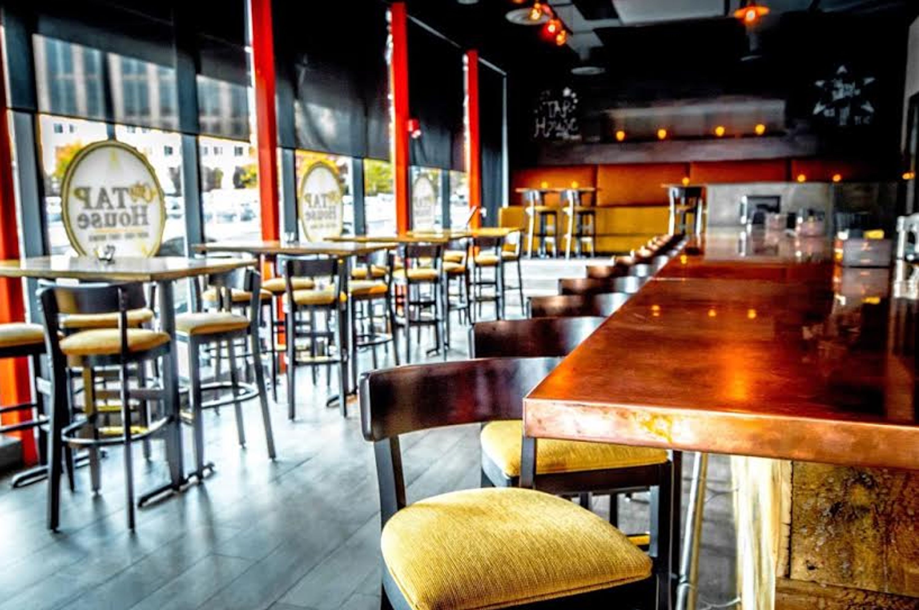 City Tap House Logan Square features multiple floors with modern American cuisine, an extensive craft beer selection, and an outdoor rooftop terrace offering elevated city views for dining and socializing.