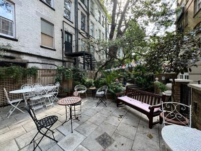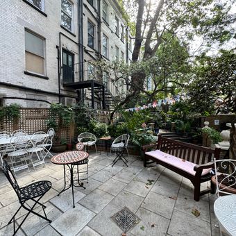 The establishment features a garden space rare among Soho coffee shops and offers affordable pricing including a £1 everyday tea alongside homemade beverages like lemonade and ginger shots.