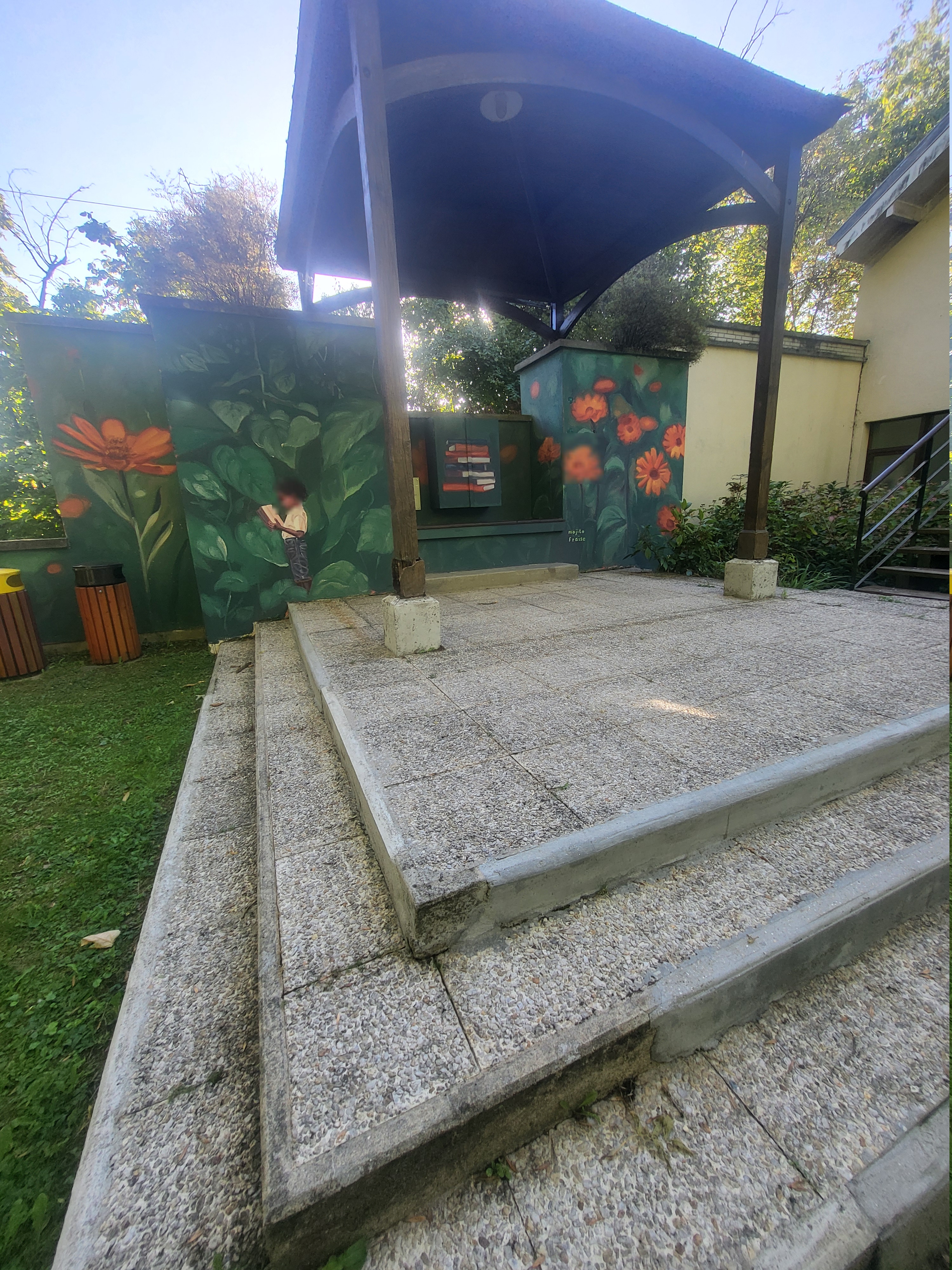 Lisière, fresque murale de street art réalisée par Mojito Fraise à Villennes-sur-Seine en 2025 dans le cadre du projet Un mur, une œuvre