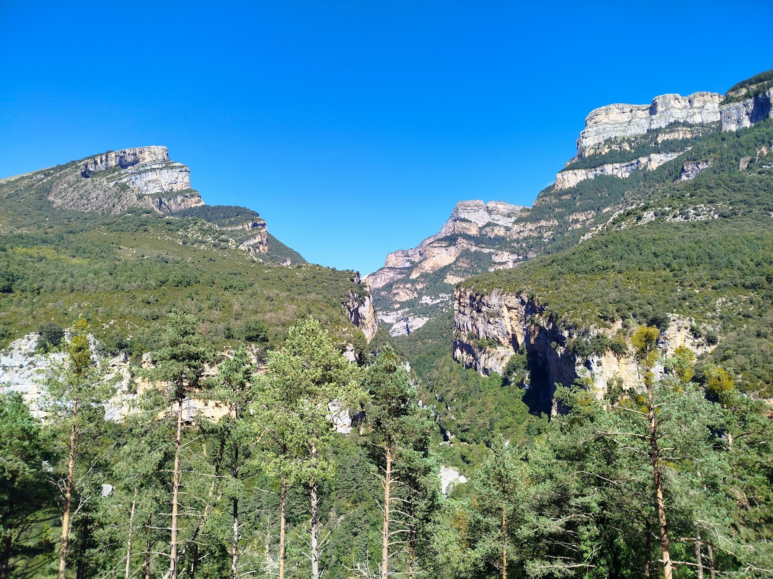 The canyon's formation spans millions of years of fluvial and glacial erosion that shaped the sedimentary rocks of the Aragonese Pyrenees mountain range.