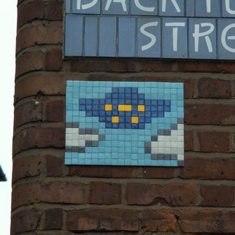 MAN_01, Space Invader mosaic in City Centre, Manchester, England.