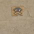 This artwork shows a small square mosaic featuring a blue-gray figure with two white eyes with red centers, placed on a pattern of yellow tiles.