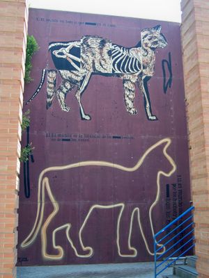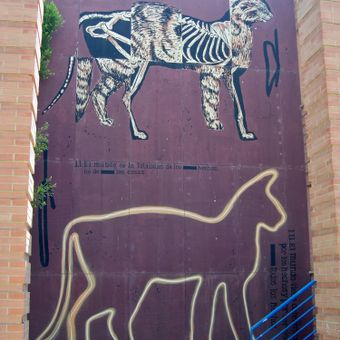 El mural representa dos ovejas, una preguntando «¿Magia?» y otras diciendo «Ciencia».