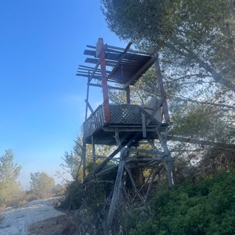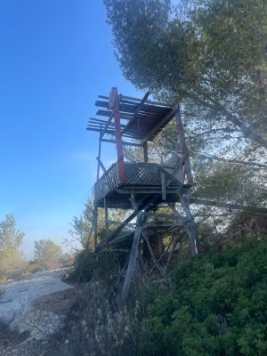 נקודת תצפית על שער הגיא עם ספסל שמשקיפה על כביש 1 ועל הרכס שמצפונו שכולל משלטים נוספים