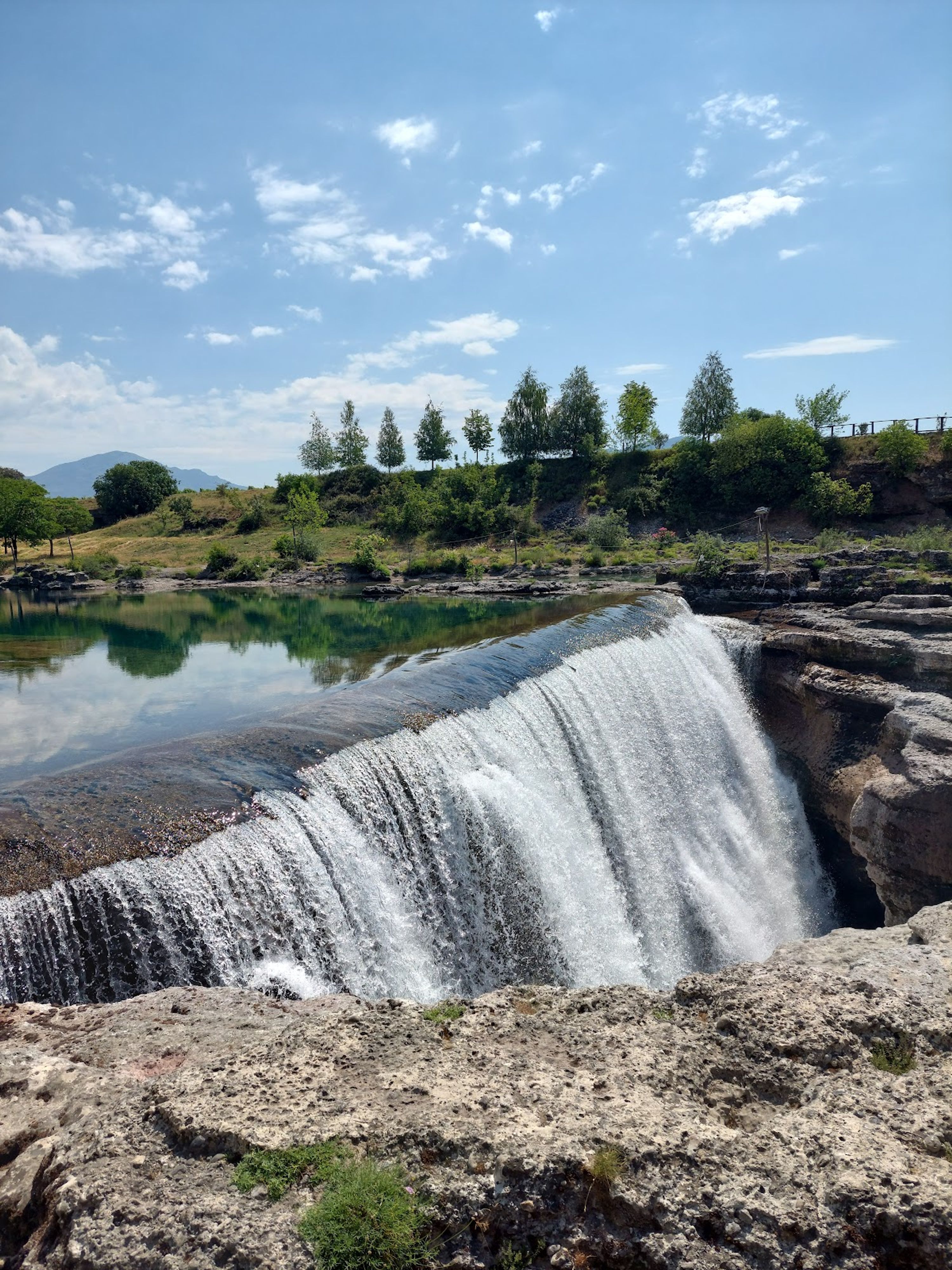 This waterfall forms as the Cijevna River flows over limestone rocks and creates a series of cascading waters that drop about ten meters into natural pools below.