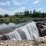 During dry summer months, the waterfall can completely dry up and reveal the natural stone formations created by the river's erosion over time.