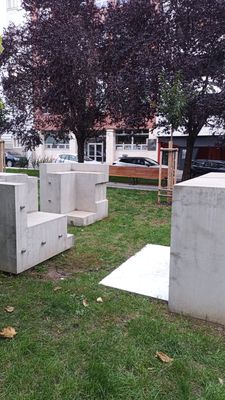 Sculpture of Olbram Zoubek in front of Hotel Continental