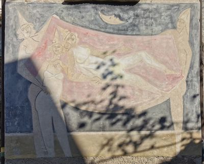 The Triumph of Gea, 1959 painting in the Arcumeggia open-air mural gallery, Casalzuigno, Italy, by Sante Monachesi