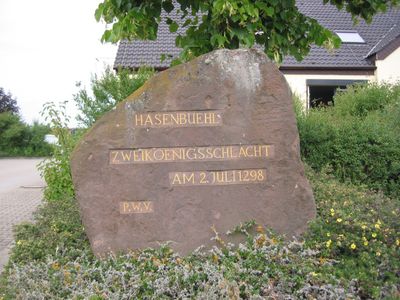 Inscription: Hasenbuehl Zweikoenigsschlacht am 2. Juli 1298 P.W.V.