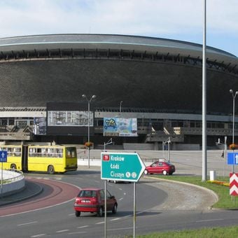 Spodek is a large multipurpose arena in Katowice with a distinctive disc-shaped dome built from reinforced concrete that seats around 11,000 people. Inside the complex you also find a hotel, an ice rink, and parking facilities spread across the structure.