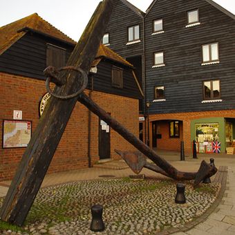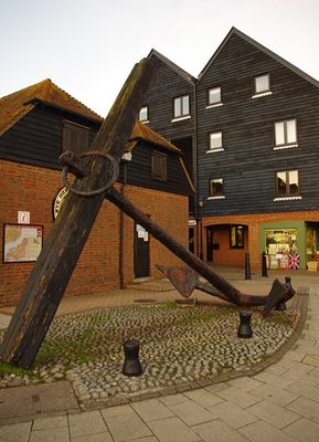 A 3-ton Admiralty patent anchor from about 1530, recovered from Rye Bay five miles south east of the harbour entrance in 1993, and probably from a large man o' war. Reconstructed in 1994 by members of the Hastings Sub Aqua Association.