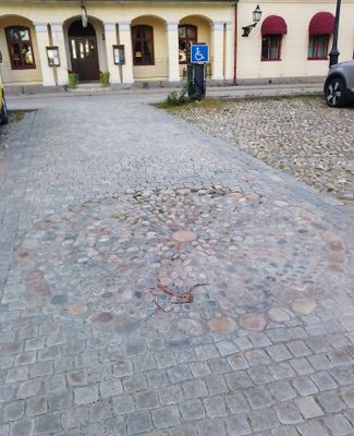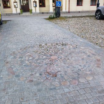 Vid den här platsen så har det funnits en skampåle. Idag så består bara platsen för pålen i mitten av en cirkeln av stenar. At this location there used to be a pillory. All that remains today is the location of the pole itself within a circle of stones.