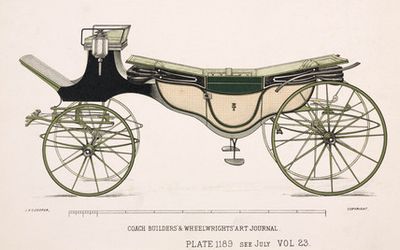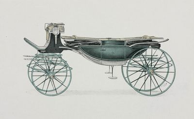 The carriage showcases the craftsmanship and attention to detail typical of early 20th-century European carriage makers, with custom decorative accents and intricate carvings reflecting the owner's taste.