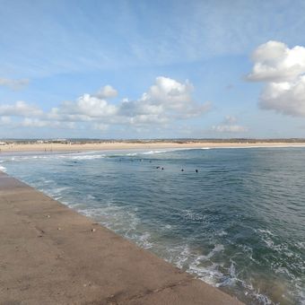 On calmer days or when swell comes from the north, waves here are smaller and gentler because the Peniche peninsula blocks much of the incoming energy, showing how the same spot can offer completely different experiences depending on conditions. In such times, less experienced surfers can use the waves while professionals often move to the nearby Molho Leste cove when swell gets too large.