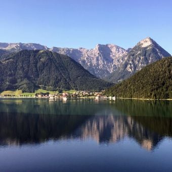 Pertisau is a small village on the western shore of Lake Achensee in Tyrol, situated at roughly 950 meters in elevation. The settlement is composed primarily of hotels, guesthouses, and restaurants that line the waterfront, providing accommodations and dining for visitors.