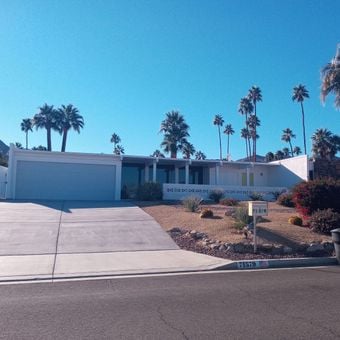 Frank Sinatra's first home, Twin Palms, was designed in 1947 by architect E. Stewart Williams and became known in the 1950s for his legendary parties. The villa shows the abundance and entertainment culture that defined the neighborhood during Hollywood's golden age.
