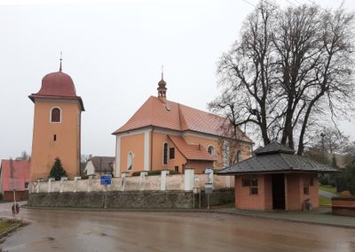 Kamenný kříž u kostela svatého Bartoloměje v Radostíně