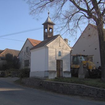 Kaple a boží muka na návsi ve Stříteži u Volyně