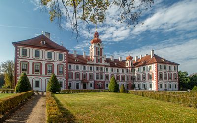 Mnichovo Hradiště Castle is a Baroque complex located beside the Jizera River with stables, a riding school, carriage house, and salla terrena forming a complete ensemble. All these structures together create the picture of how a noble household operated and maintained itself.