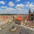The rectangular square contains significant Gothic and Baroque buildings, including the Church of Our Lady before Týn and the Old Town Hall with its astronomical clock.