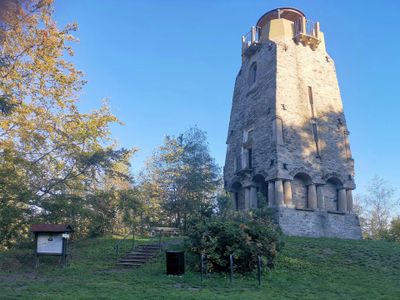 The tower belongs to a network of 234 monuments built across Europe to honor Otto von Bismarck, the first Chancellor of unified Germany.