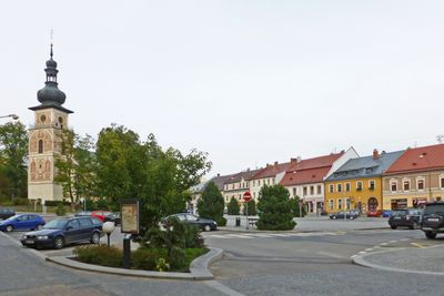 The town functions as a transportation hub with the I/19 road connecting to Žďár nad Sázavou and Boskovice, plus a railway line extending to Tišnov.