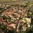 Nymburk is a district town in Central Bohemia situated along the Elbe River, combining Gothic brick structures with modern municipal buildings and residential areas. The town layout shows the medieval core at its center, with the river providing natural boundaries to its development.