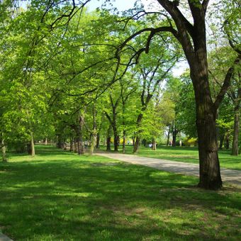 Multiple tram lines connect to Letná, with dedicated walking paths, cycling routes, playgrounds, and sports fields spread throughout the adjacent park.