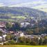 Vizovice spans across 28 square kilometers of land in the Zlín Region, containing residential areas, parks, and a historic town center at 296 meters elevation.