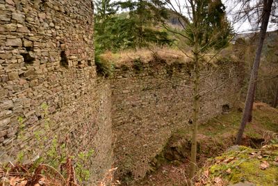 Access to the ruins is via marked hiking trails from the village of Persztejn in the Ore Mountains region. Sturdy footwear is recommended, as the terrain includes uneven ground and steep climbing sections.