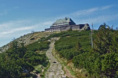 The first wooden shelter on the summit was constructed in the late 1800s to accommodate travelers and mountaineers crossing between Poland and the Czech territories.