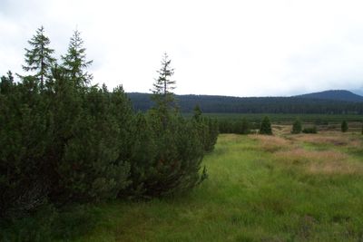Jezerní slať is a peat bog landscape in Šumava National Park located between two settlements in South Bohemia. The terrain spans low-lying wetlands and mixed plant communities across a 208-hectare area at elevations between 1057 and 1075 meters.