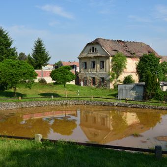 Podstavec vylomeného kříže na jižním okraji Koporeče