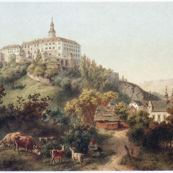 Náchod Castle is a fortress in the northern Bohemian city of Náchod with multiple courtyards and thick stone walls enclosing the complex. The central tower contains underground chambers and dungeons beneath its foundations.