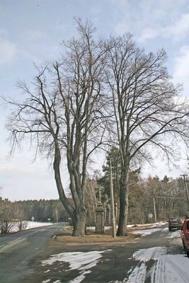 Boží muka a zvonička naproti obecnímu úřadu v Újezdu u Sezemic