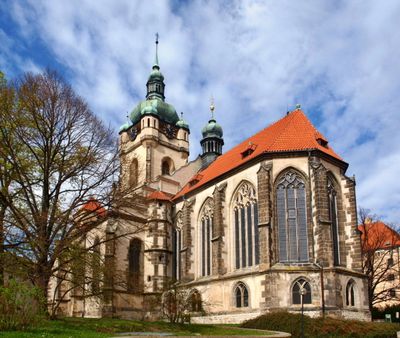 Church of Sts Peter and Paul, Gothic church at the confluence of Elbe and Vltava rivers, Czech Republic