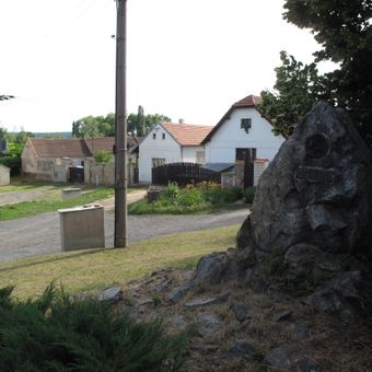 Pomník nejasného účelu v parku v Hlavní ulici v Předboji