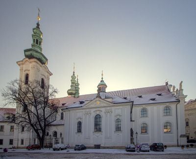 The basilica maintains regular visiting hours and stands at the Strahov Monastery complex, positioned at coordinates 50.086482, 14.389269.
