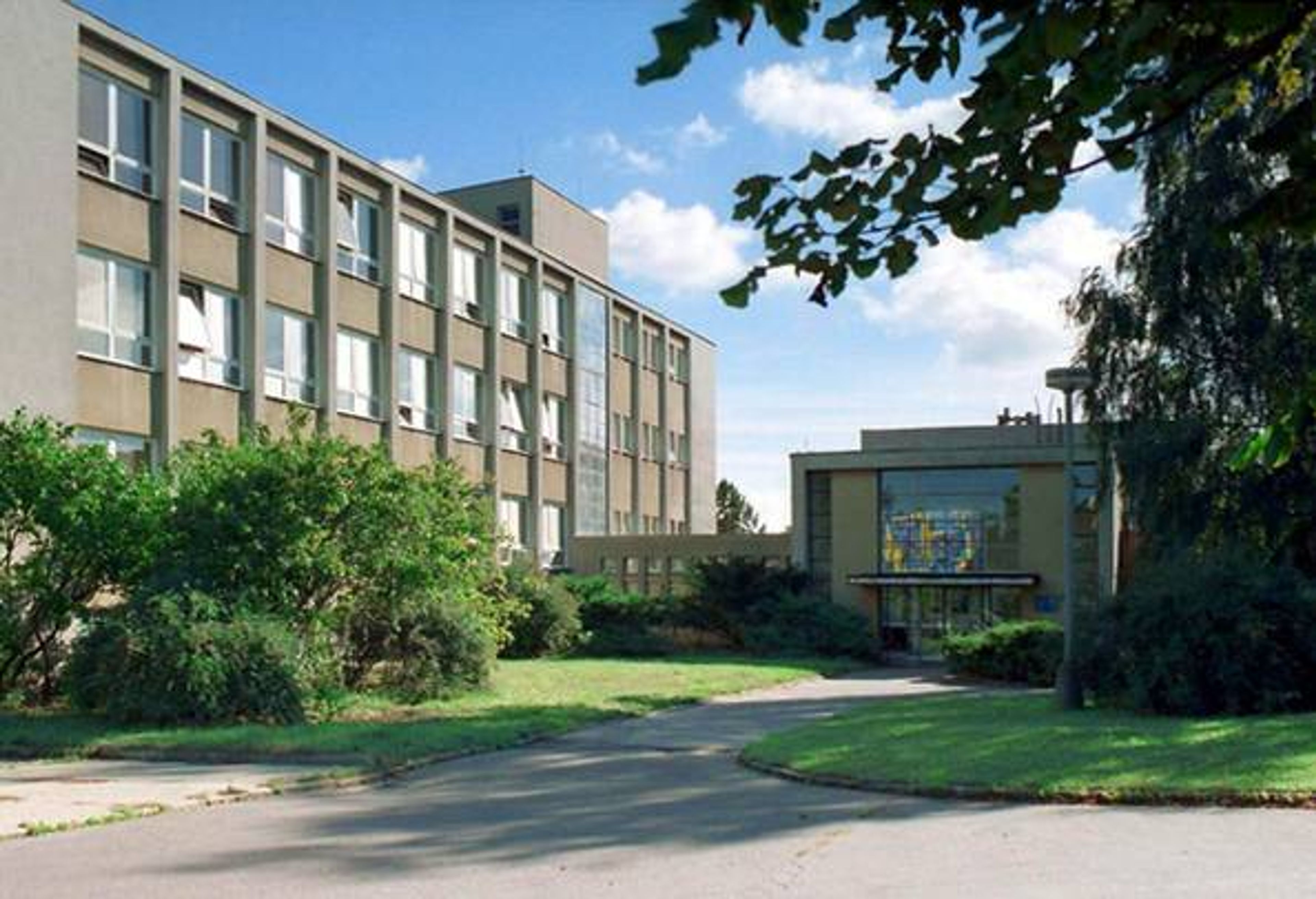 Kamenná plastika v areálu zemědělské univerzity v Suchdole