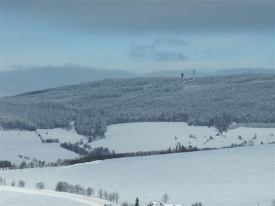 The summit area features Kramářova chata, a mountain hut designed by architect Jaroslav Stejskal in 1928, which includes a 28-meter concrete watchtower.