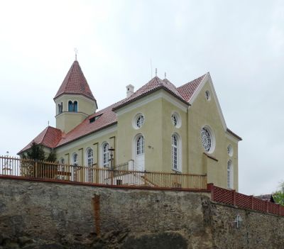 Synagogue in Český Krumlov, Romanesque Revival synagogue in Plešivec, Czech Republic.