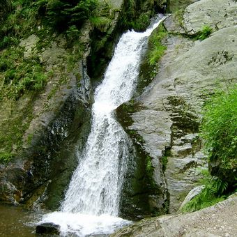 Rešovské vodopády, Natural cascade waterfall system in Hanušovice Highlands, Czech Republic.