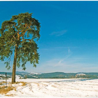 Borovice u Pecky, Protected Scots pine tree in Pecka, Czech Republic.
