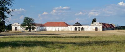 Socha vlka s erbem Kinských u zámeckého skleníku v Lednici